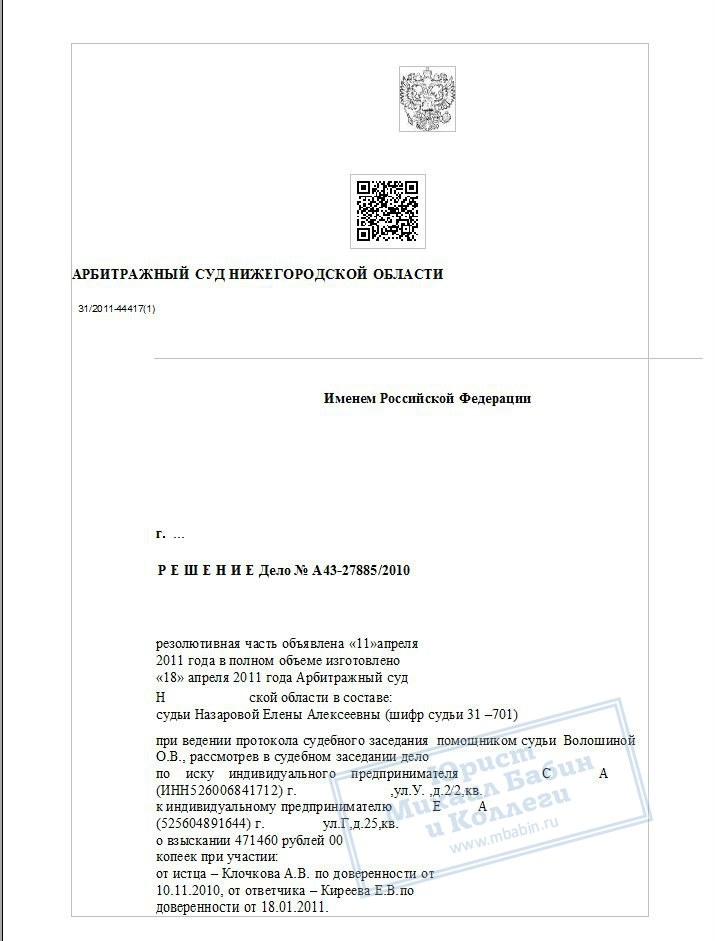 В дальнейшем С.А. также была оказана правовая помощь на стадии исполнительного производства. Взысканные решением суда денежные средства были получены С.А. в полном объеме.